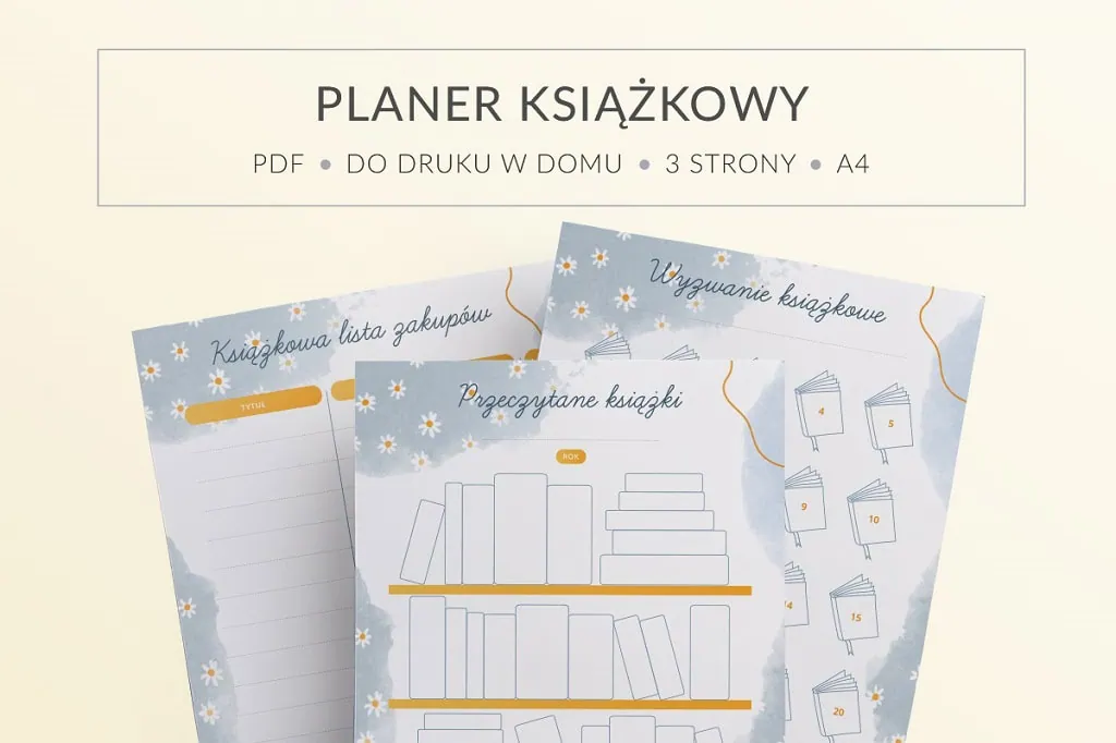 Po zakupie otrzymasz planer czytelnika jako plik PDF w formacie A4 do samodzielnego wydruku. Oferta dotyczy produktu do pobrania; nie jest to produkt fizyczny.