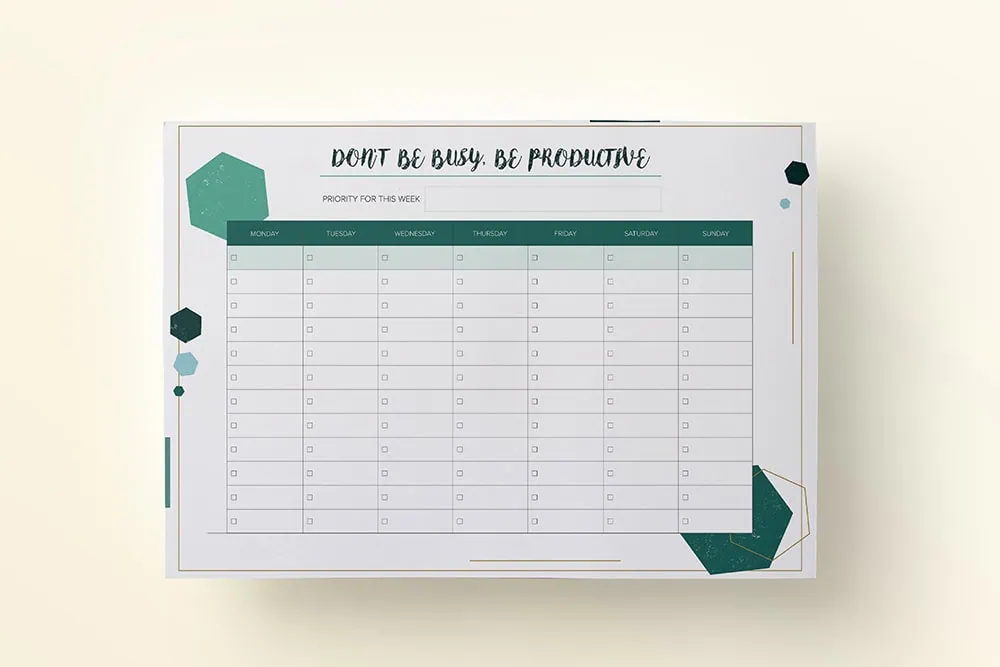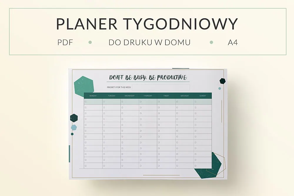 Planer, lista zadań do druku „Don’t be busy, be productive”