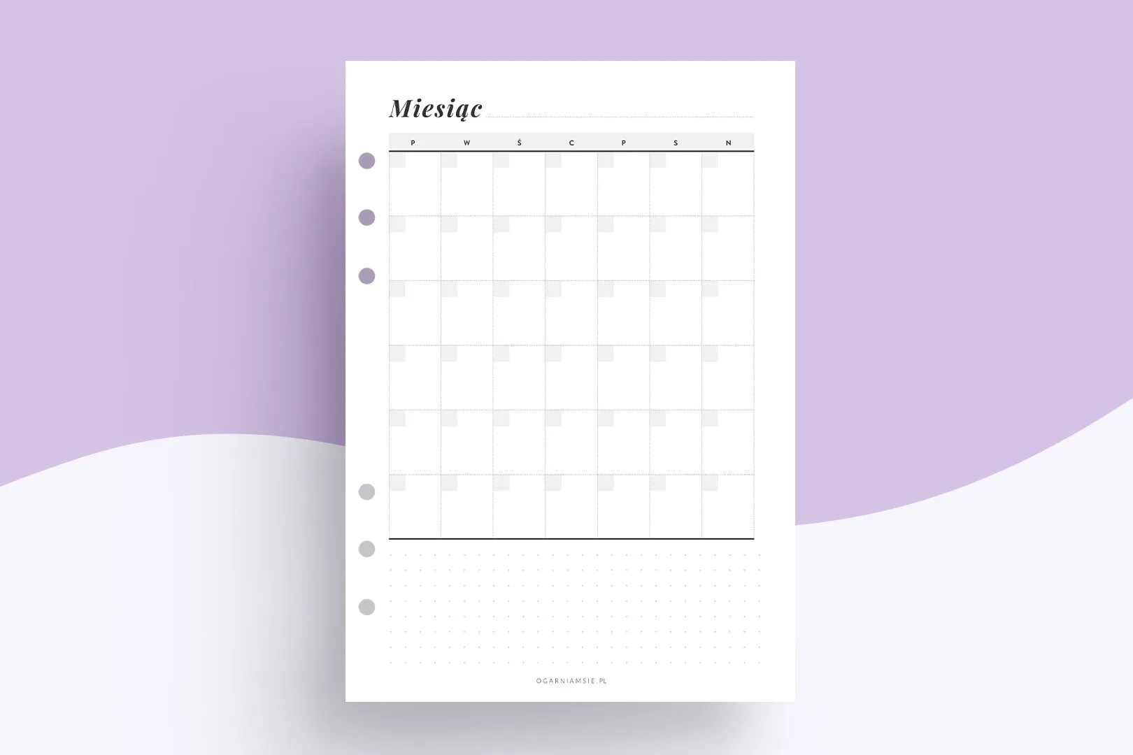 Planer miesięczny bez dat to idealne narzędzie do ogarniania miesiąca, kiedy nie chcesz być ograniczony konkretnymi datami. Jego układ w pionie sprawia, że łatwo zapiszesz najważniejsze wydarzenia, zadania czy spotkania, a przestrzeń na każdy dzień pozwala uniknąć zbędnego bałaganu.