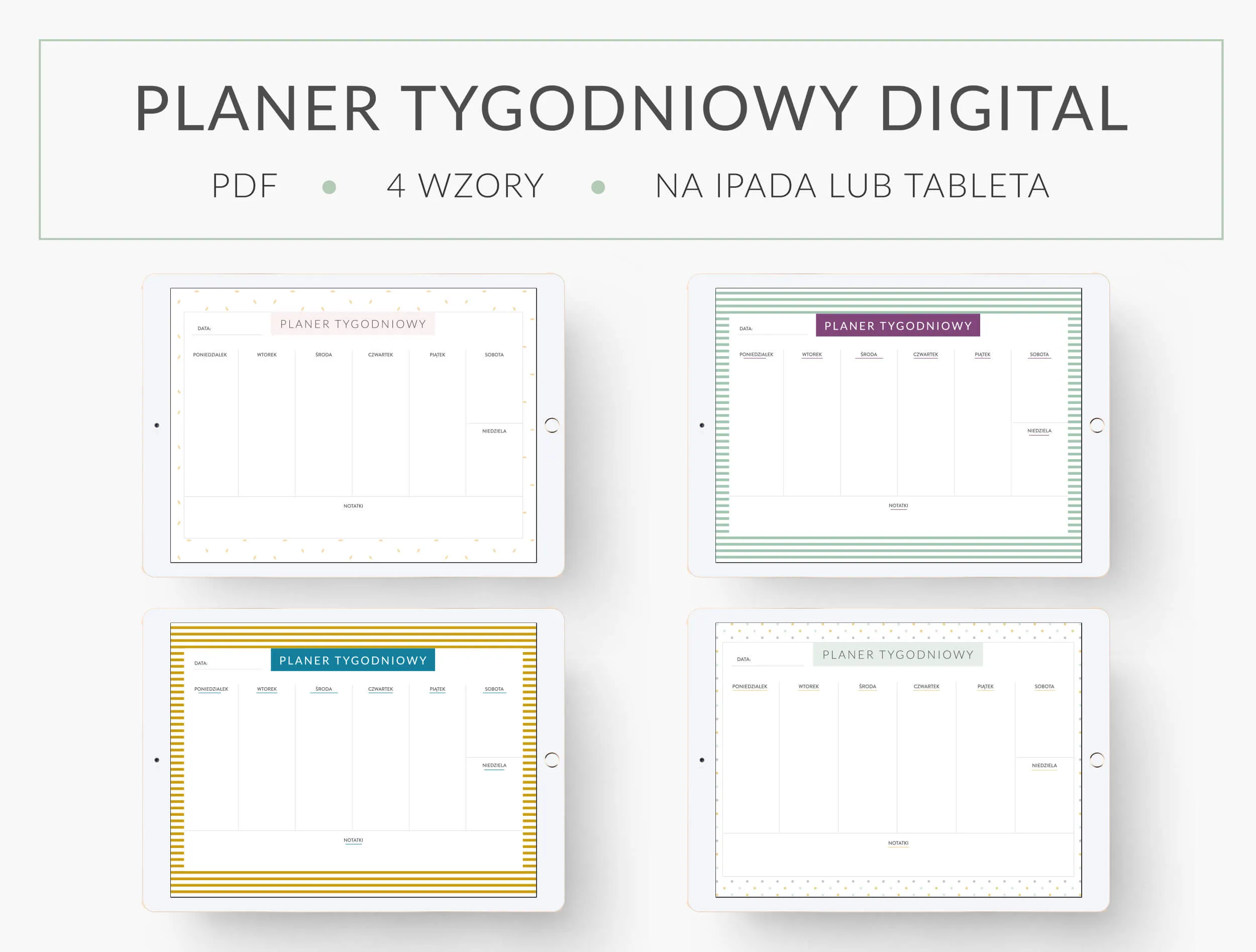 Planer tygodniowy na Ipada – bez dat, 4 wzory