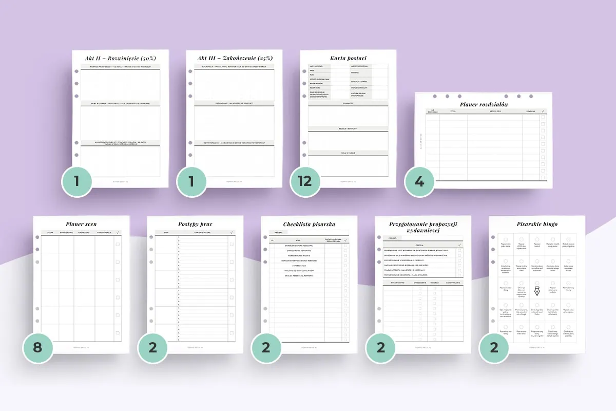 Masz w głowie historię, która nie daje Ci spokoju? Dodatek pisarski do organizera to zestaw szablonów, który pomoże Ci przełożyć pomysły na strukturę – krok po kroku.