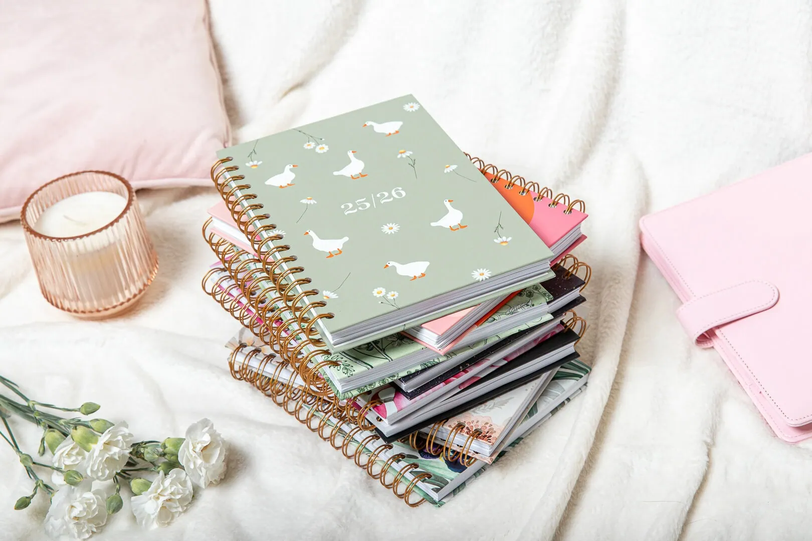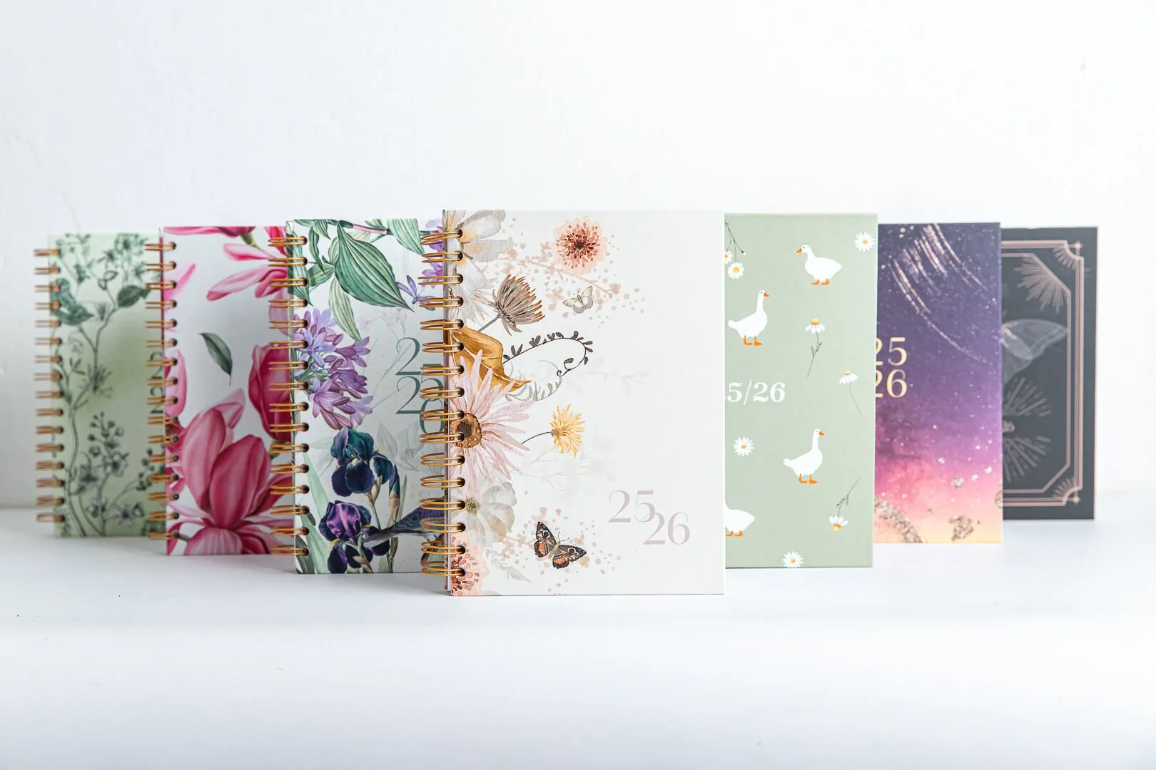Planer skincare - prócz szablonów dotyczących organizacji - zawiera też po prostu kalendarz. Wybieraj spośród wielu wzorów twardych okładek i ciesz się datowanym wkładem od 28 lipca 2025 do 2 sierpnia 2026. Okładka jest bardzo wytrzymała i funkcjonalna - posiada gumkę spinającą oraz ma możliwość dodania koperty na drobiazgi.