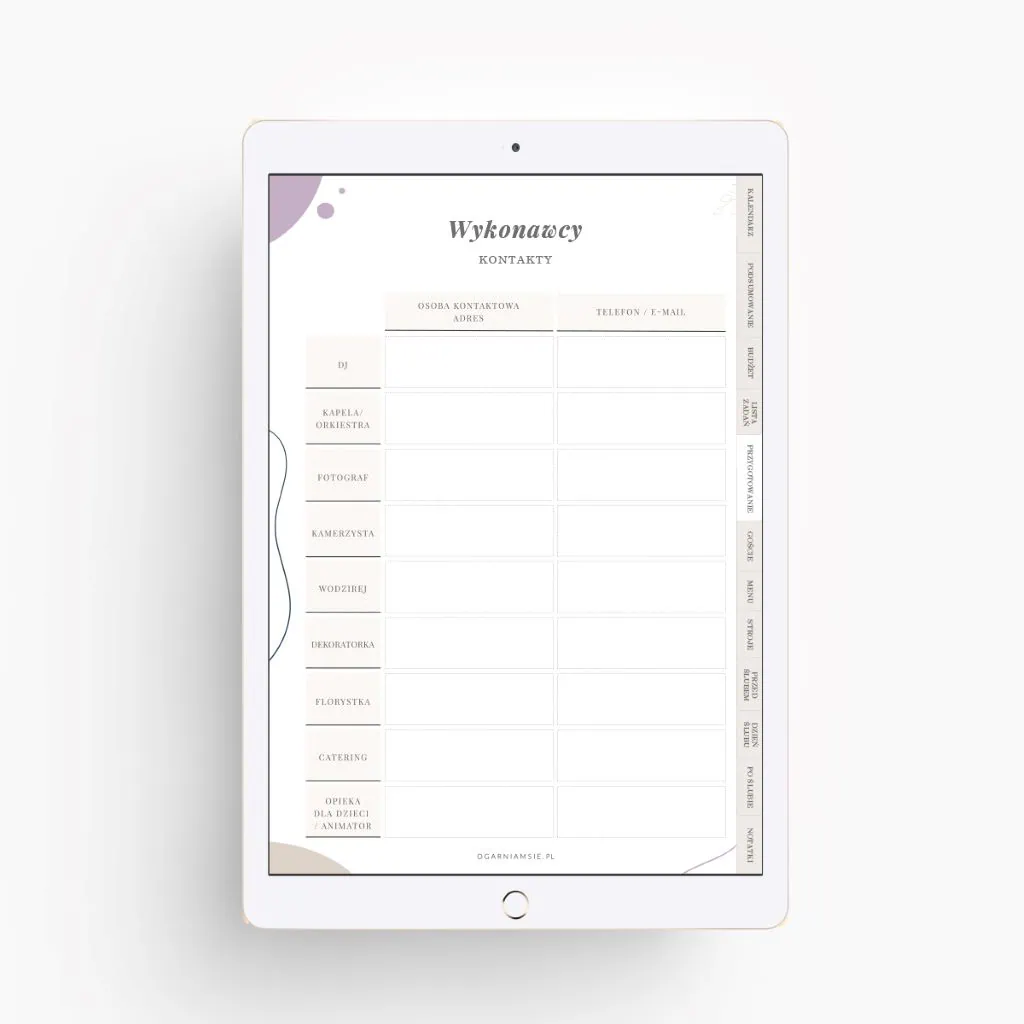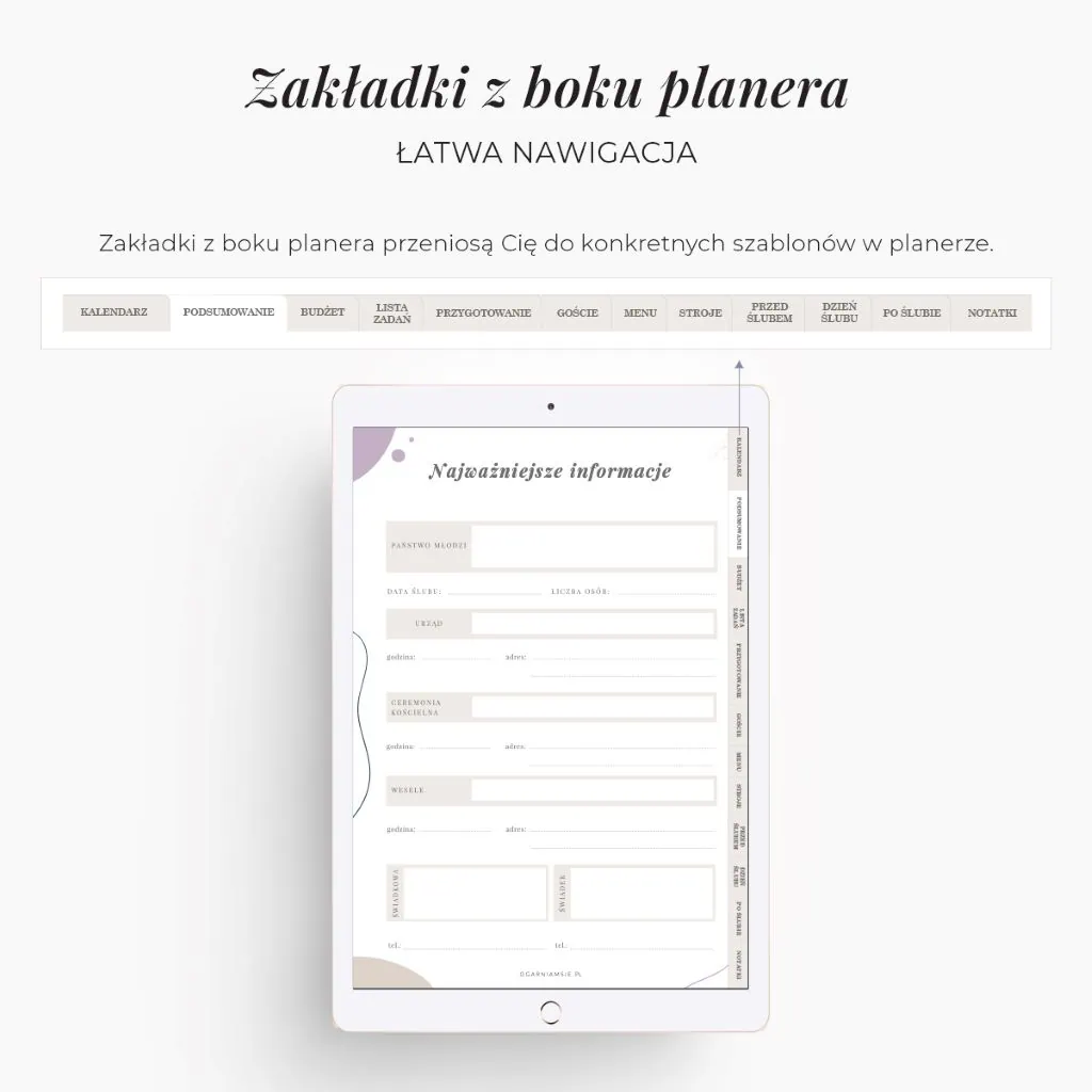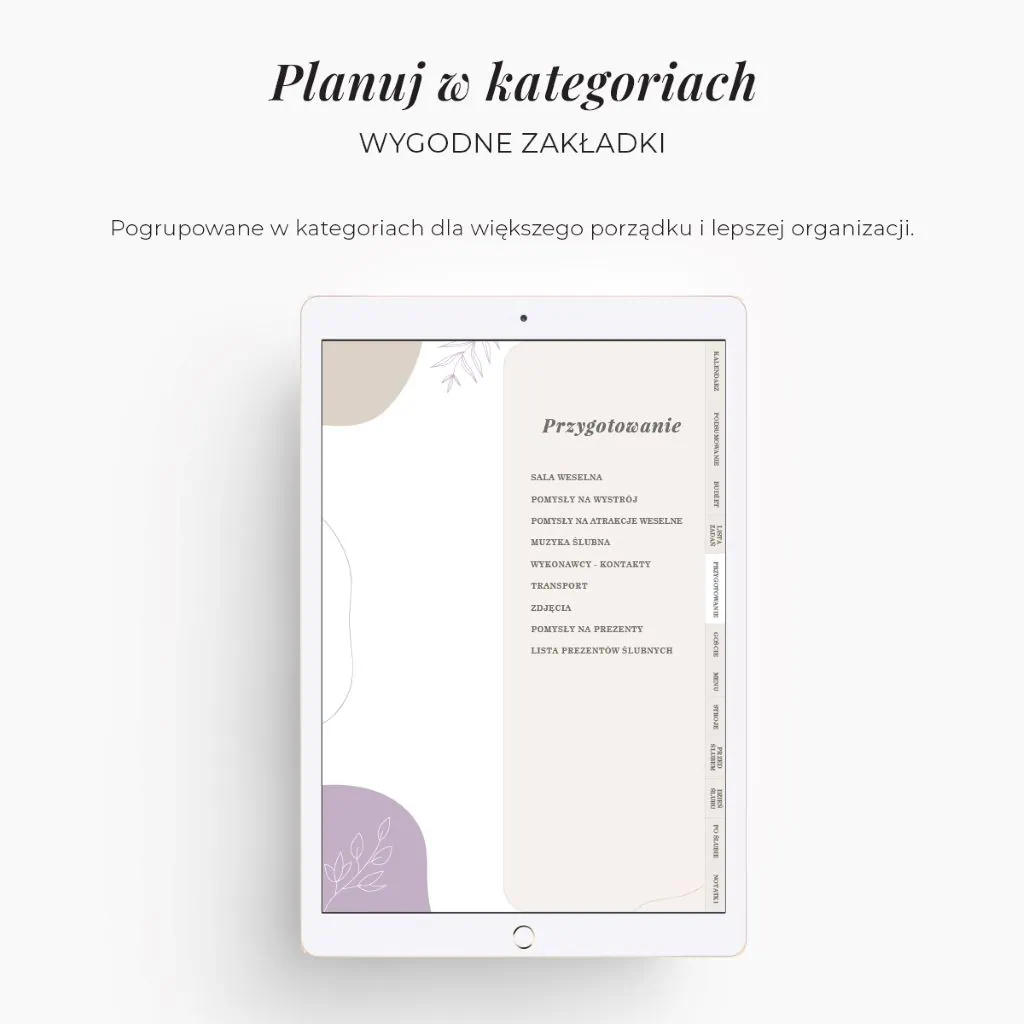 Otrzymasz plik Planera Ślubnego, który dzięki zakładkom jest łatwy w nawigacji