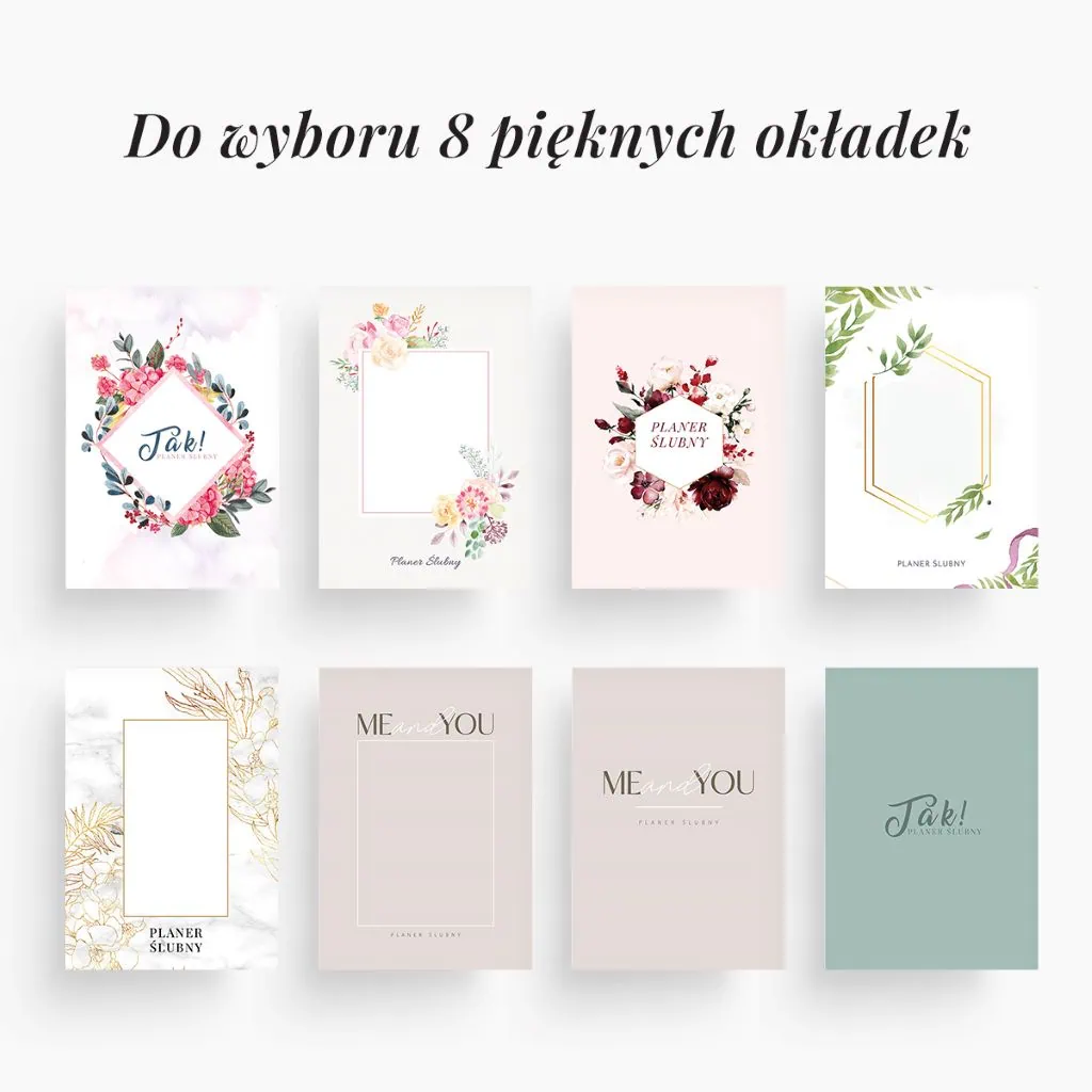 Na początku pliku PDF znajdziesz aż aż 8 wzorów okładek. Jesteśmy przekonani, że znajdziesz wśród nich taką, która skradnie Twoje serce tak samo jak Pan Młody. 🙂