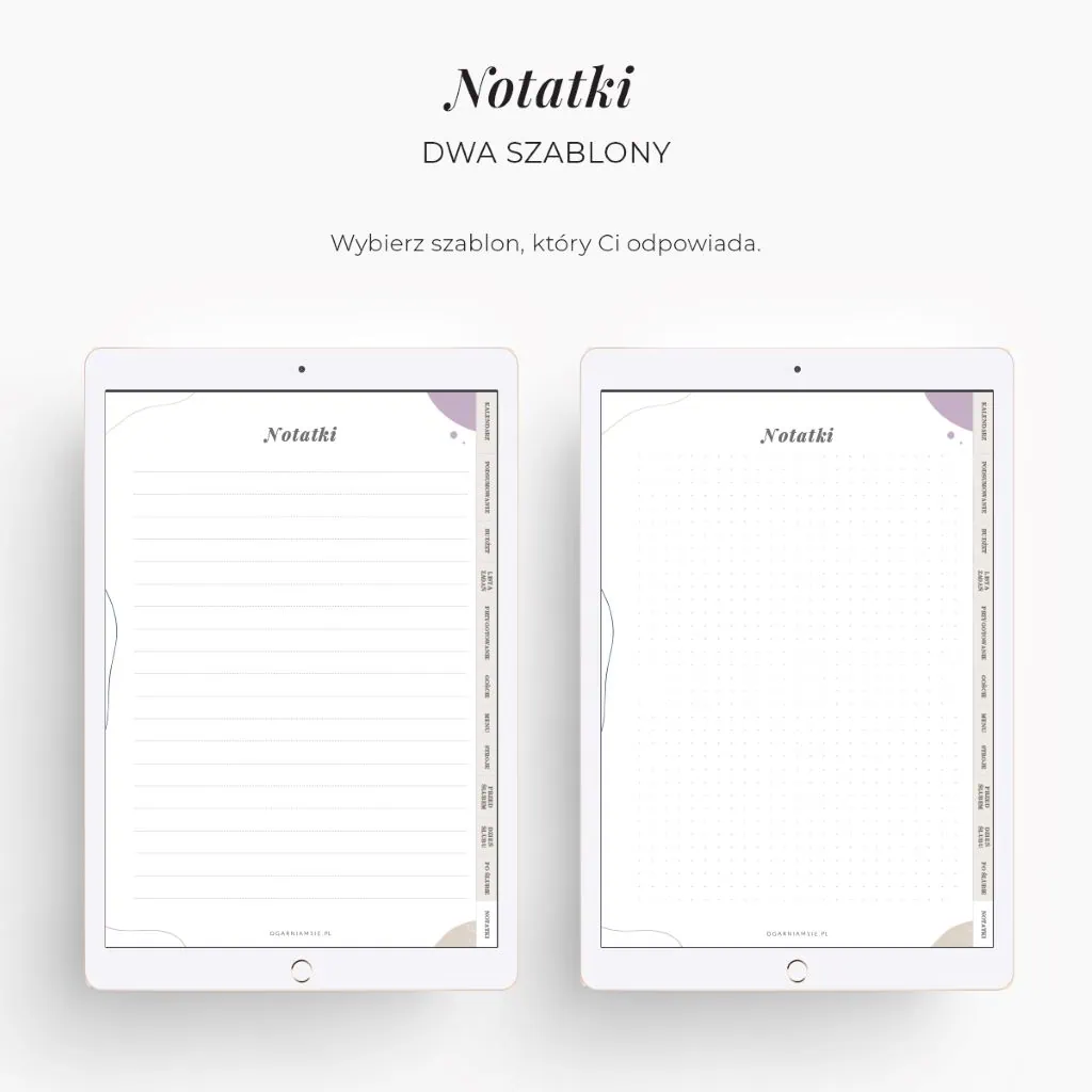 Planery do użytku z aplikacją Goodnotes, Notability, Samsung Notes bądź Xodo. Z planera najwygodniej korzystać za pomocą rysika Apple lub innego z cienką końcówką.