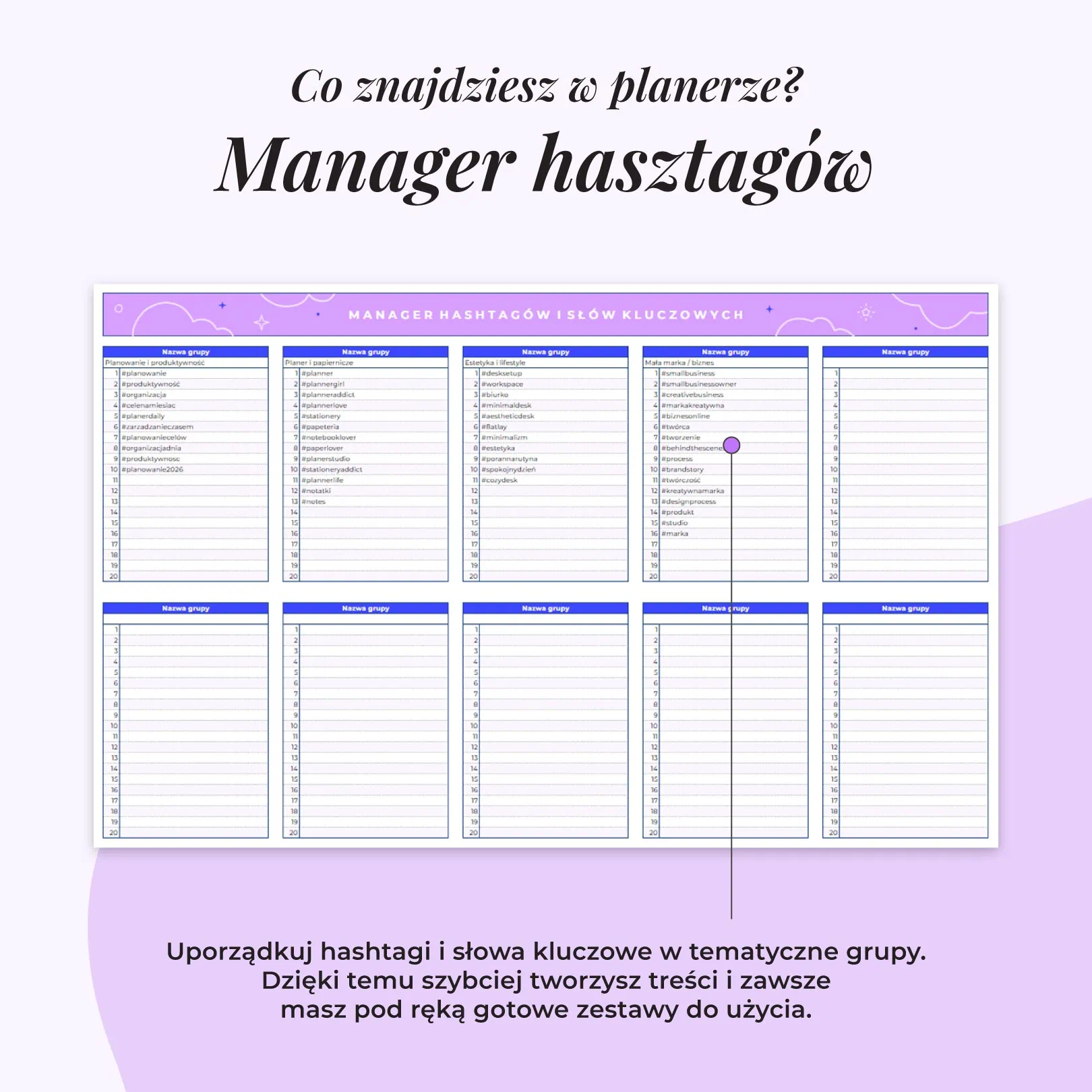 - Manager hashtagów, żeby nie wymyślać ich od nowa za każdym razem.