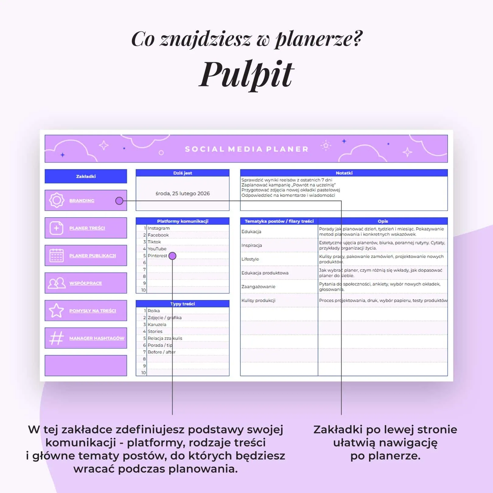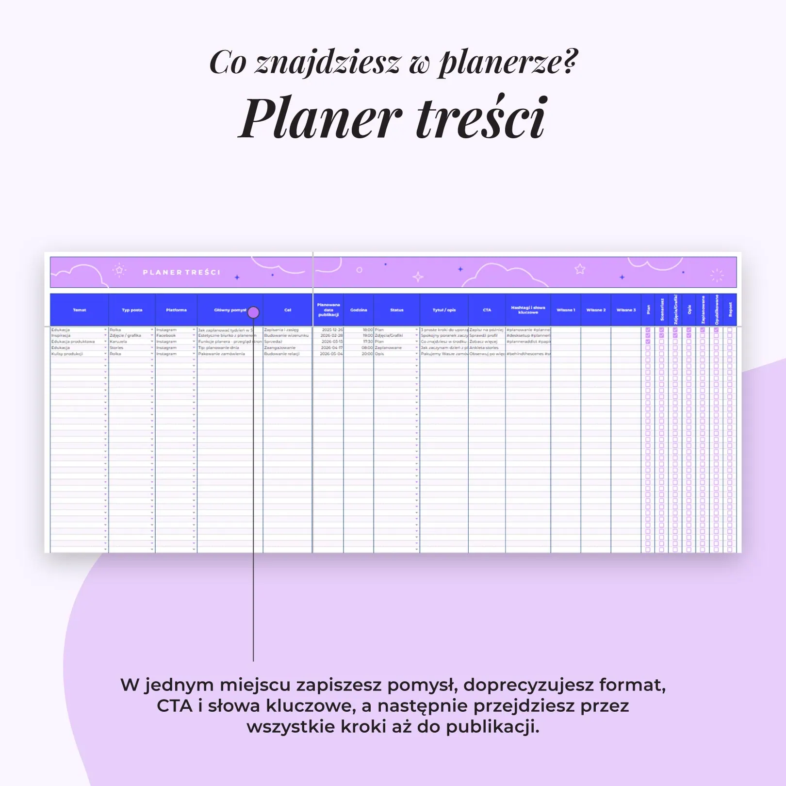 W jednym miejscu zaplanujesz treści, uporządkujesz pomysły i rozpiszesz kalendarz publikacji.