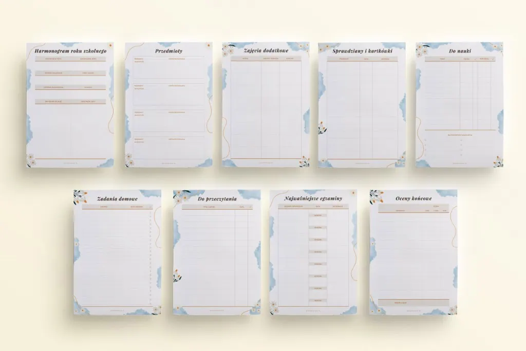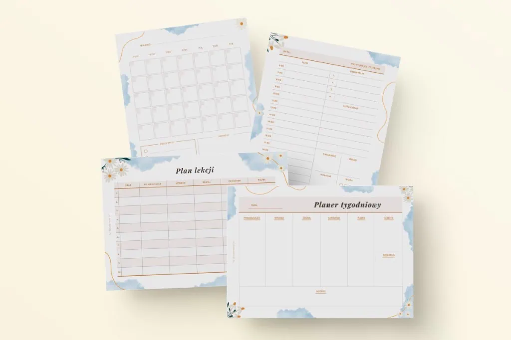 Wszystkie planery są formatu A5, przygotowane w plikach PDF gotowych do druku w domowych warunkach. Możesz je wydrukować i wpiąć do swojego ulubionego organizera albo trzymać jako luźne kartki w zeszycie.