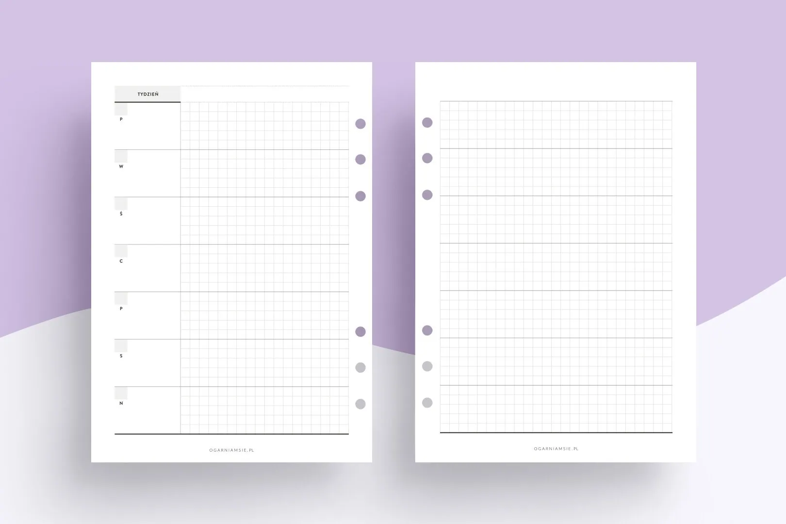 W tym planerze masz przestronny układ, który pozwala na zapisanie wszystkich zadań, wydarzeń oraz ważnych punktów na każdy dzień tygodnia. Dodatkowe miejsce na notatki pozwala zapisać wszystko, co jest istotne, a brak dat daje Ci pełną elastyczność w rozpoczęciu planowania, kiedy tylko zechcesz. Idealny do organizera A5, pozwala utrzymać porządek i łatwo zapisać wszystko, co trzeba zrobić w danym tygodniu.