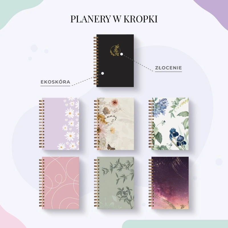 Planer w kropki to produkt nie wymagający określenia dat w kalendarzu, co daje swobodę rozpoczęcia korzystania z niego w dowolnym momencie, bez obawy o zmarnowane strony. Nasz kalendarz z notatnikiem to idealny wybór dla początkujących planistów i tych, którzy pragną pełnej kontroli nad swoim czasem. Planer w kropki - sprzymierzeniec zapracowanych osób!