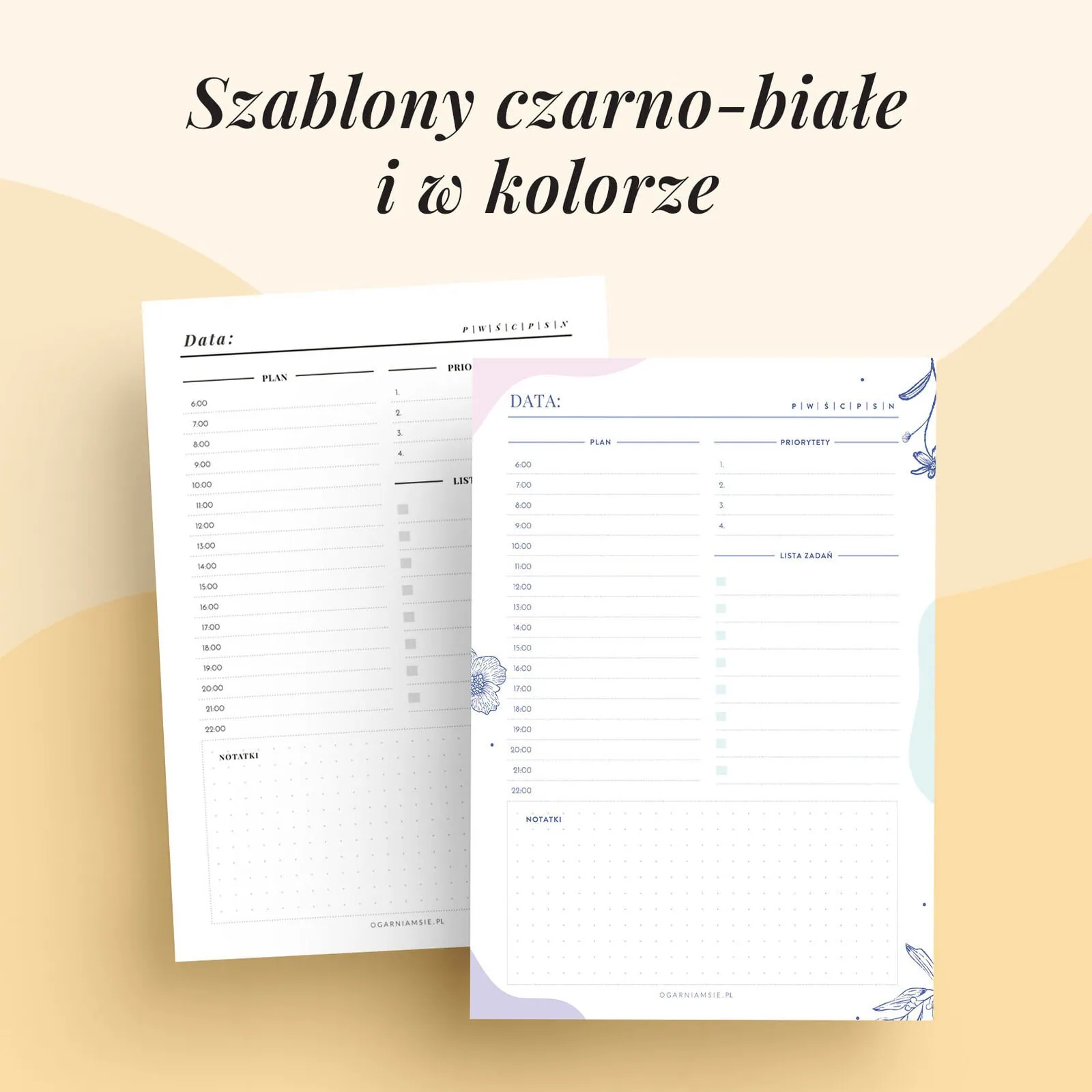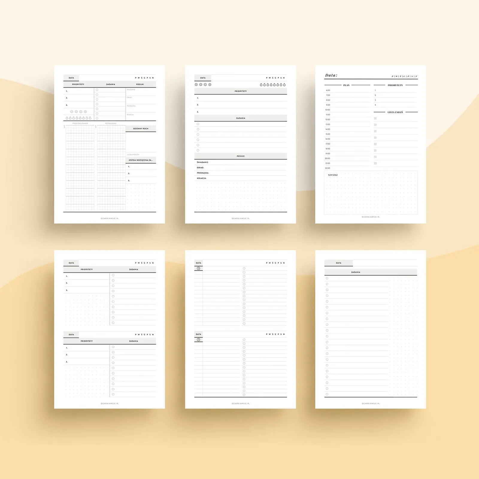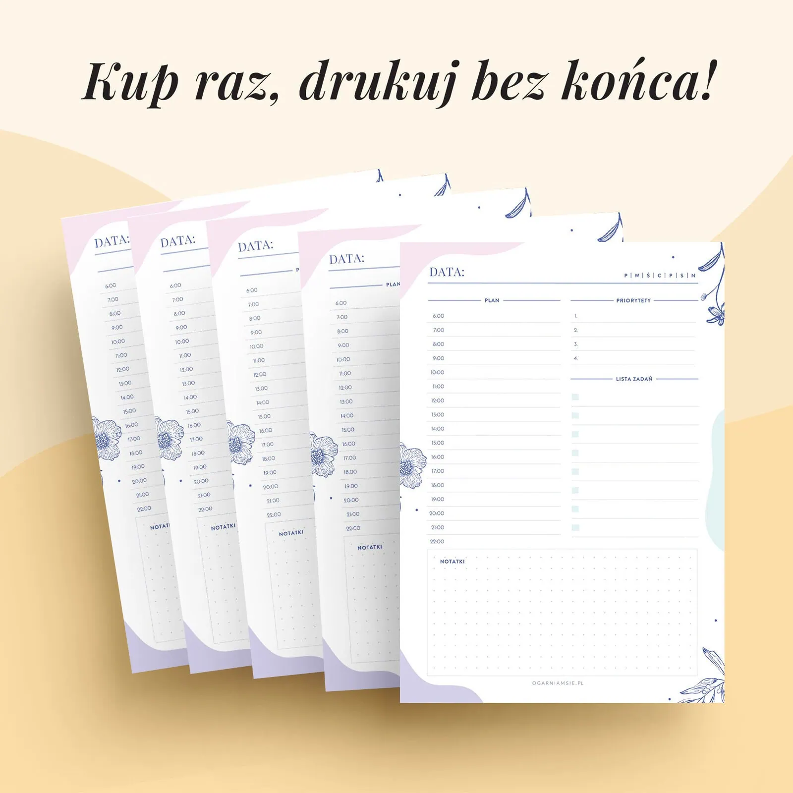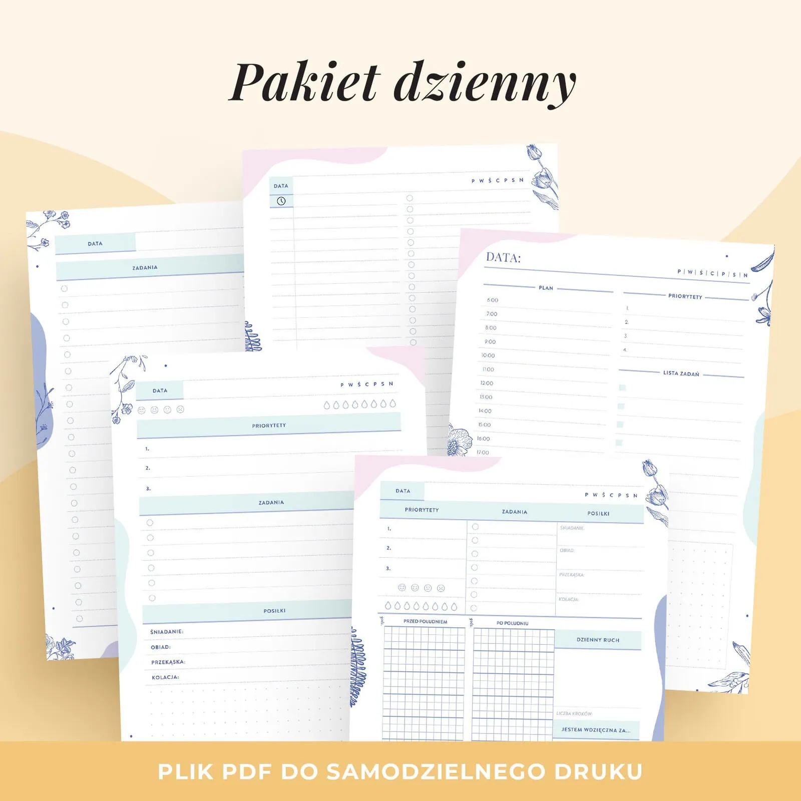 Czujesz, że dzień Ci ucieka, a lista zadań nie ma końca? W głowie tylko jedno pytanie: „Jak to ogarnąć?” Mamy coś, co pomoże Ci ze spokojem zorganizować każdy dzień! Zestaw planerów dziennych jako wkłady do organizera do druku pomoże Ci ogarnąć dzień z lekkością!