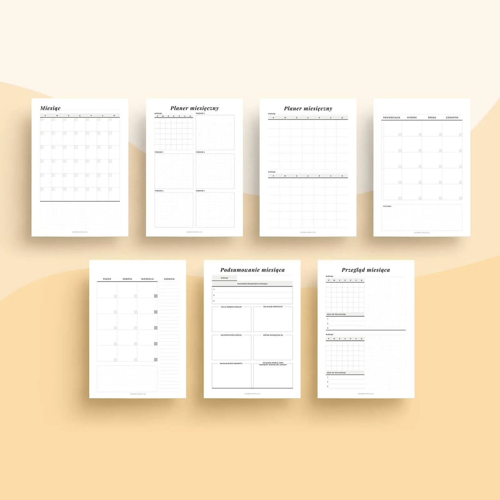 Zestaw: planery miesięczne – wkłady do organizera do druku