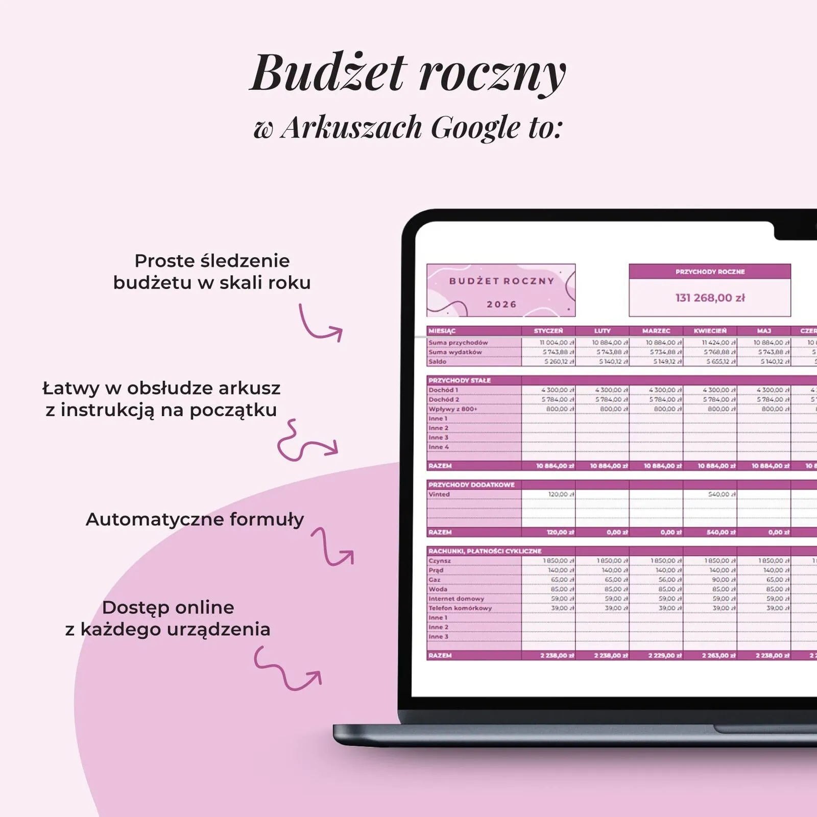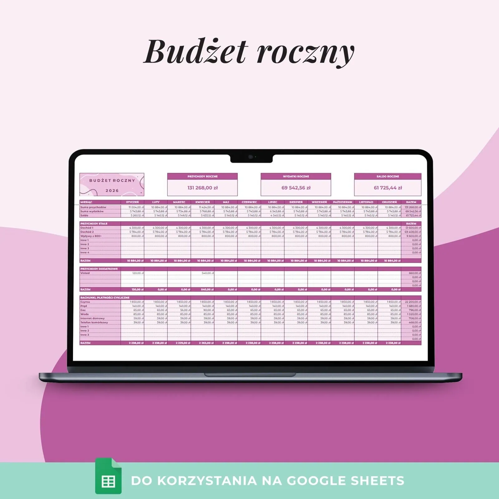 - Wszystko w jednej zakładce - roczny budżet rozpisany przejrzyście – miesiąc po miesiącu, bez miliona kart i przeklikiwania. Minimalistycznie, ale z głową.