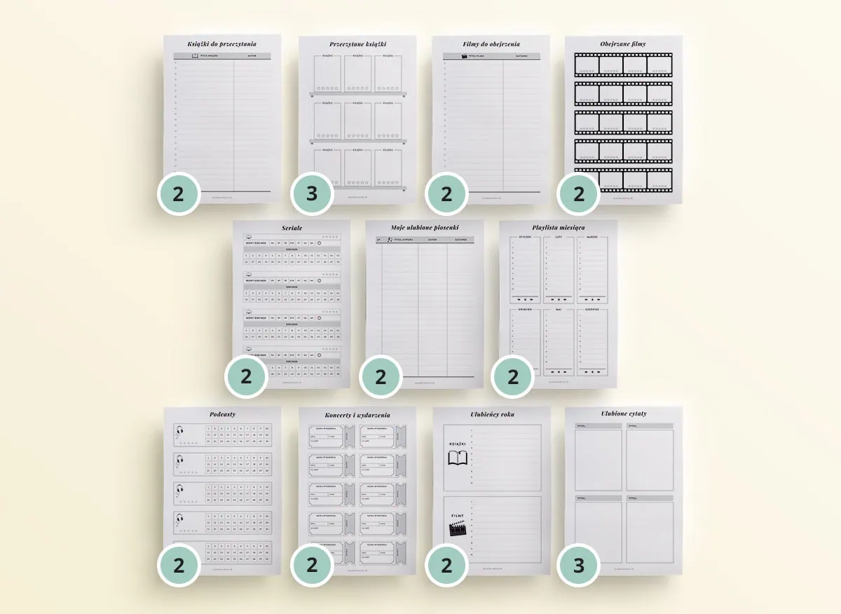 Na zdjęciu znajdziesz liczbę wskazującą ile planów (stron) danego rodzaju znajdziesz we wkładzie.