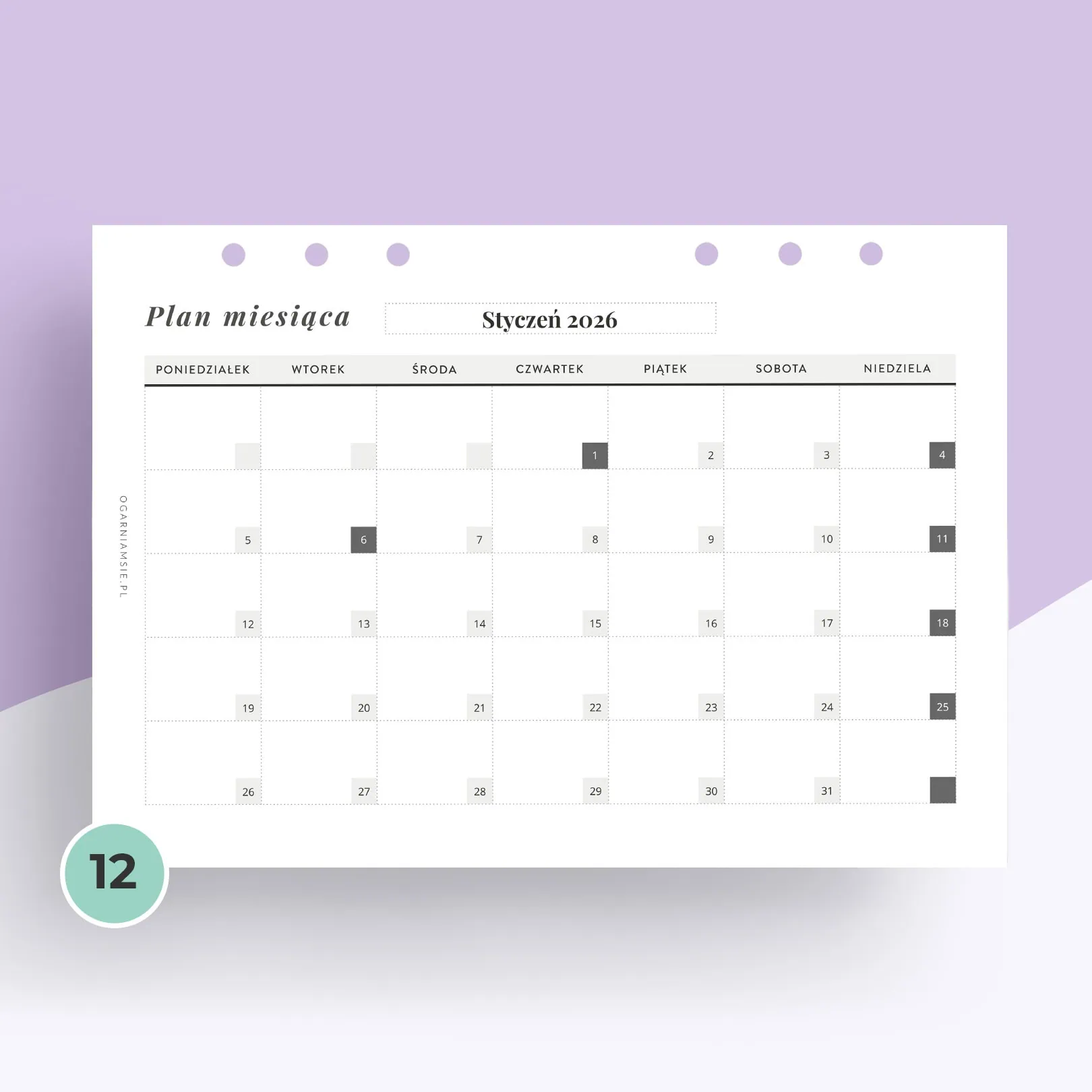 Ślubny kalendarz miesięczny – wkład do organizera