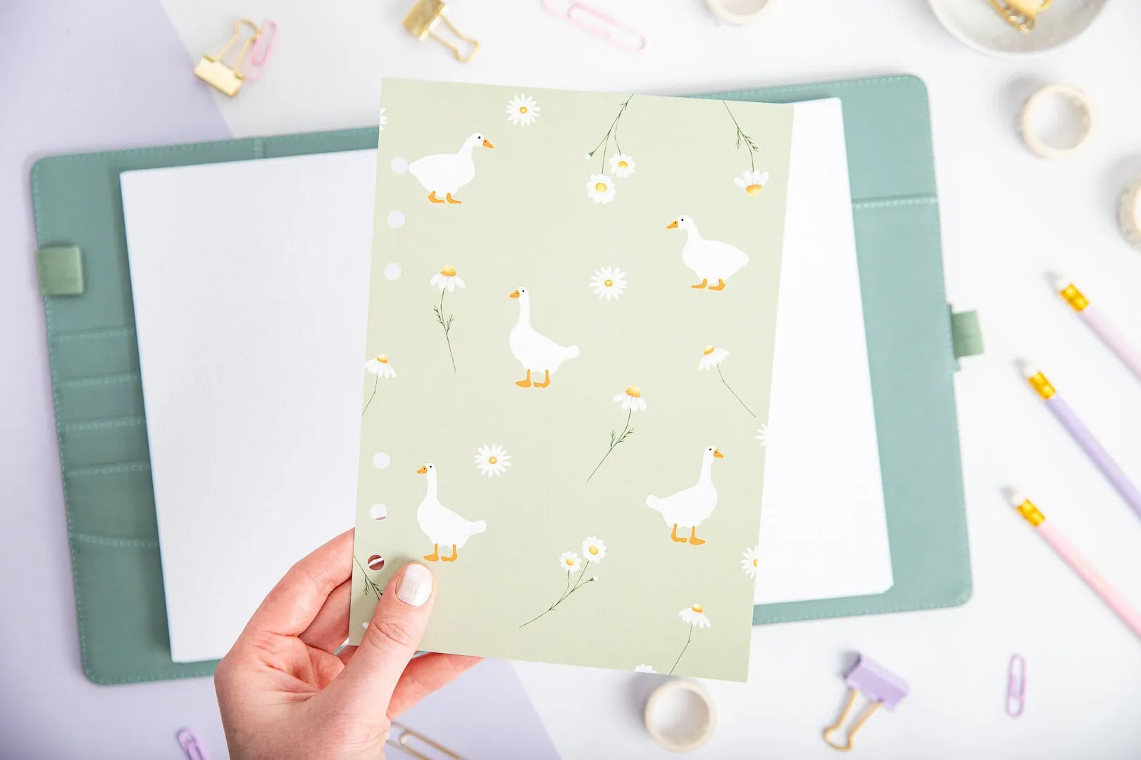 Strona tytułowa na papierze o gramaturze 350g to przedziurkowana karta (6 otworów), która idealnie pasuje do naszych organizerów A5.
