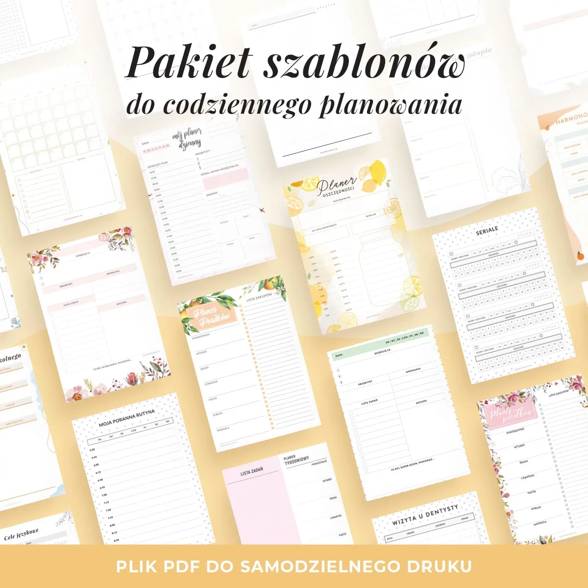 Nie musisz już szukać różnych narzędzi do planowania – wszystko, czego potrzebujesz, znajdziesz w tym zestawie. Drukujesz tylko to, czego akurat potrzebujesz, a potem dostosowujesz każdy szablon do swojej codziennej organizacji.