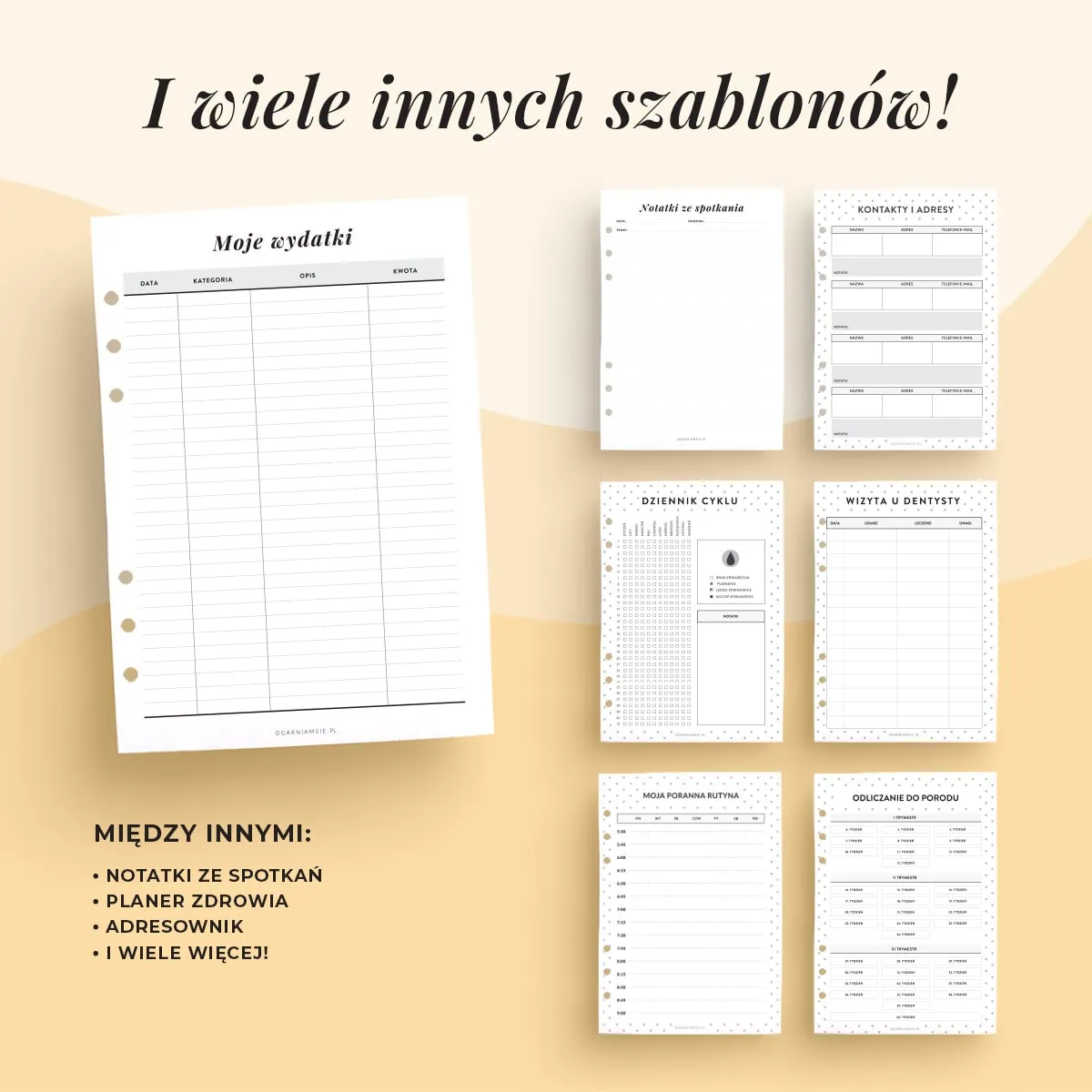 To ponad 200 szablonów do organizacji dnia, tygodnia, miesiąca, nawyków, finansów i wielu innych obszarów w życiu!
