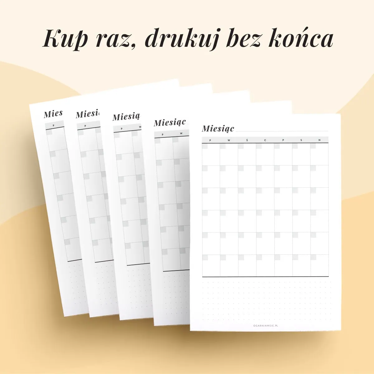 Z naszym zestawem szablonów do druku masz możliwość stworzenia systemu planowania, który idealnie pasuje do Twoich potrzeb. Wybieraj spośród setek różnych szablonów dziennych, tygodniowych, miesięcznych oraz wielu innych. Dopasuj je do swoich codziennych zadań, nawyków i celów – wydrukuj i umieść w organizerze. Proste, elastyczne, dopasowane do Ciebie!