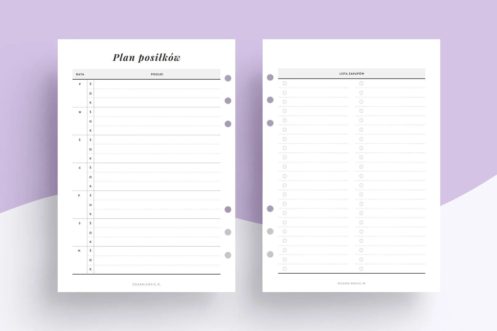 Wkład do organizera | Planer posiłków i lista zakupów