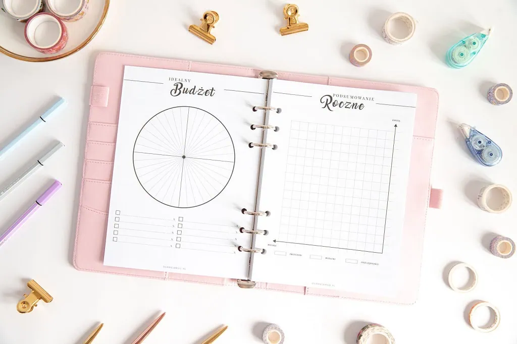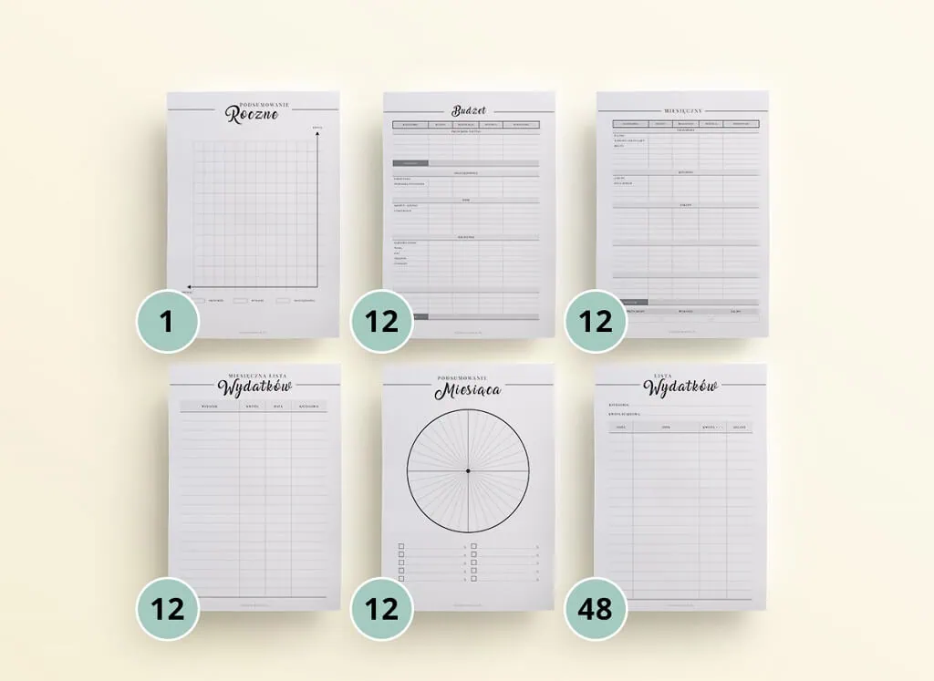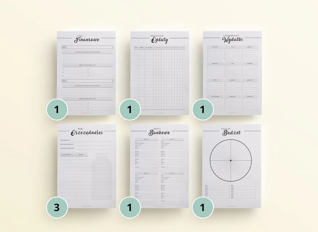 Zestaw zawiera piękną stronę tytułową – Organizer budżetowy oraz następujące szablony: