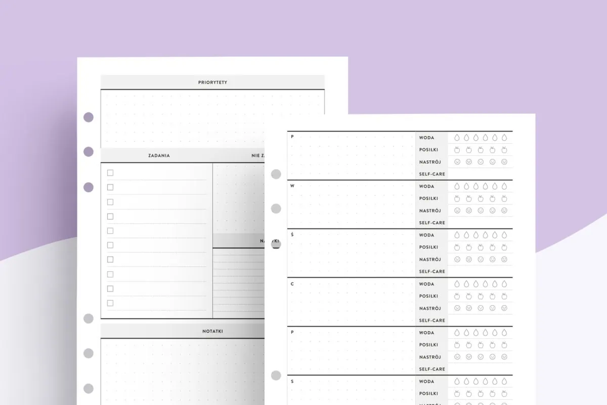 Dodatkowo, planer zawiera sekcję na notatki, co daje przestrzeń do zapisywania przemyśleń lub dodatkowych zadań, które pojawią się w ciągu tygodnia.Brak data pozwala zacząć używanie planera w dowolnym momencie, dostosowując go do swojego rytmu życia.