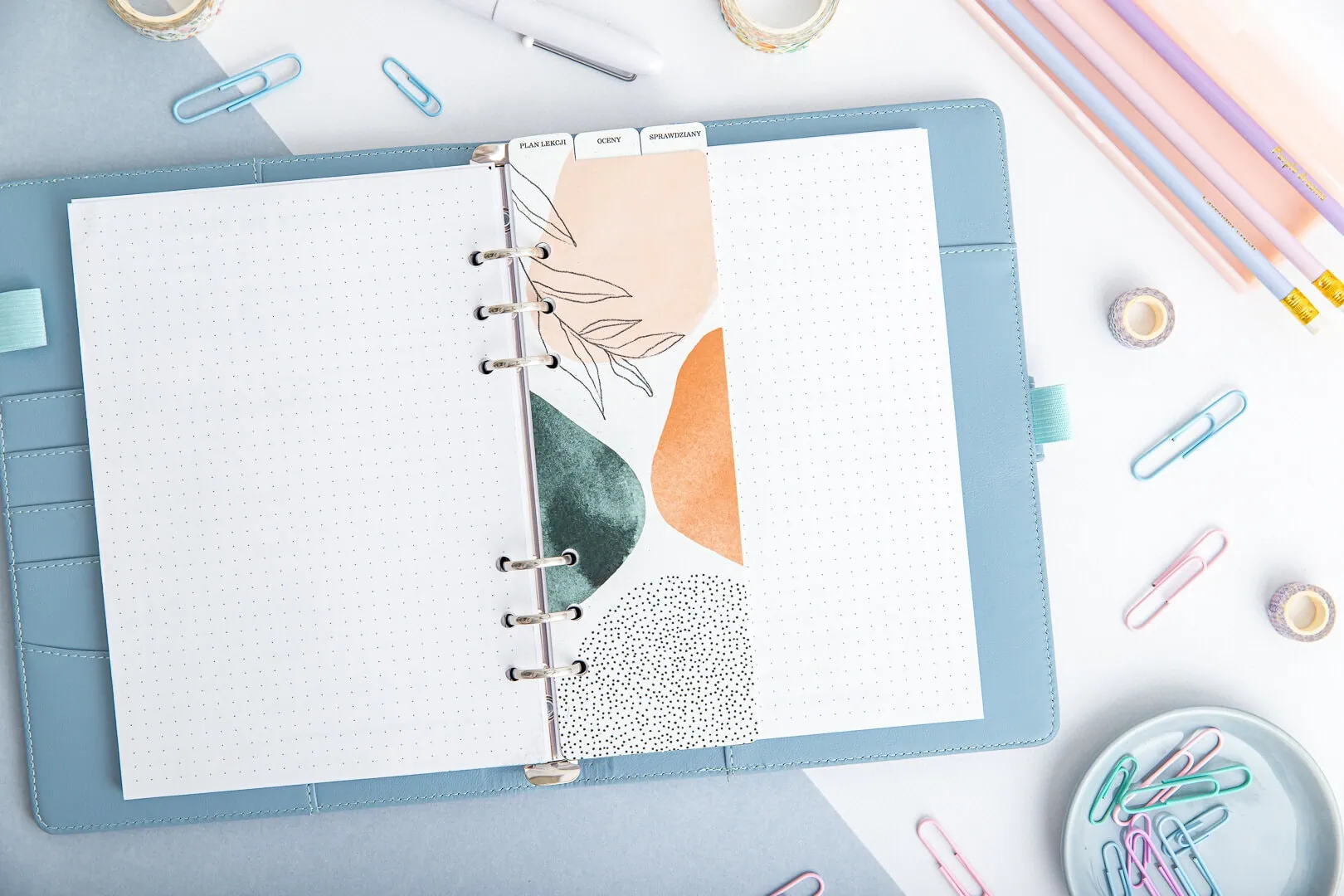 Zakładka ma 6 otworów, które pasują do naszego organizera. Jej wymiary to: 22 cm x 7 cm.