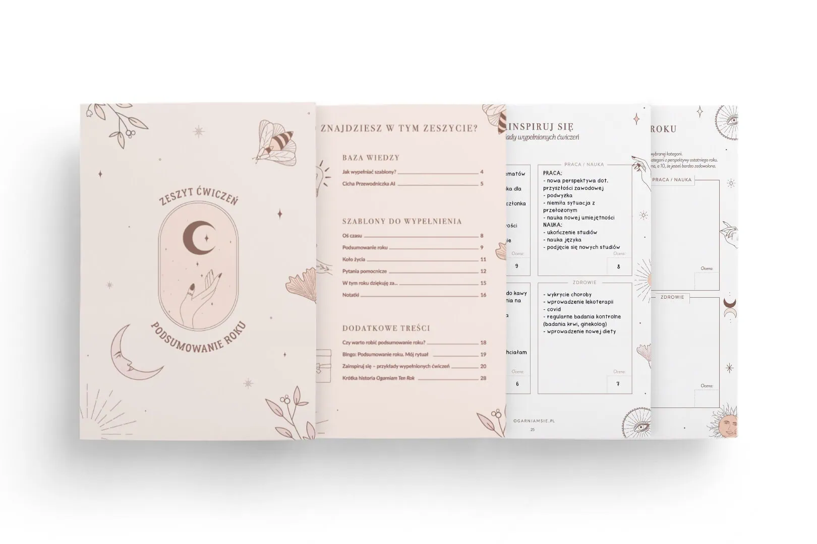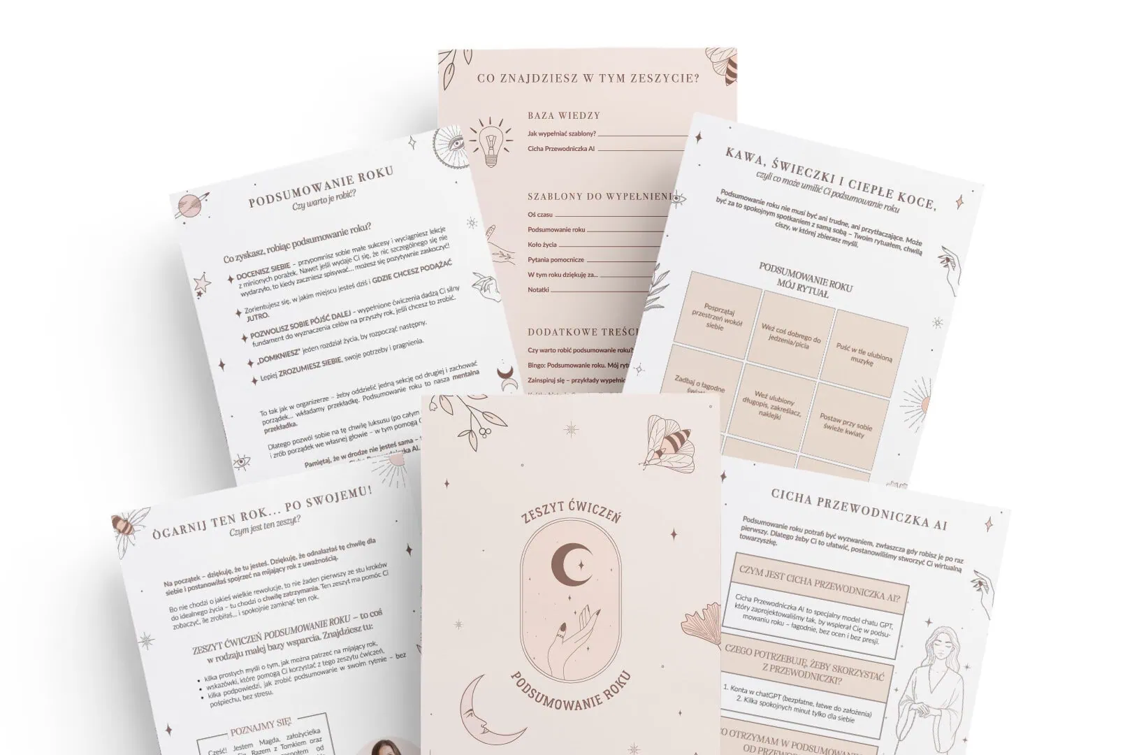 Możesz przejść przez wszystkie zeszyty po kolei, pominąć krok, wrócić do któregoś później albo zacząć od tego, który najbardziej Cię teraz woła. Ten proces ma służyć Tobie — Twojemu rytmowi, Twojej energii i Twojemu sposobowi podsumowywania roku. Tutaj nie ma „jednej właściwej drogi”. Jest tylko ta, którą wybierzesz.